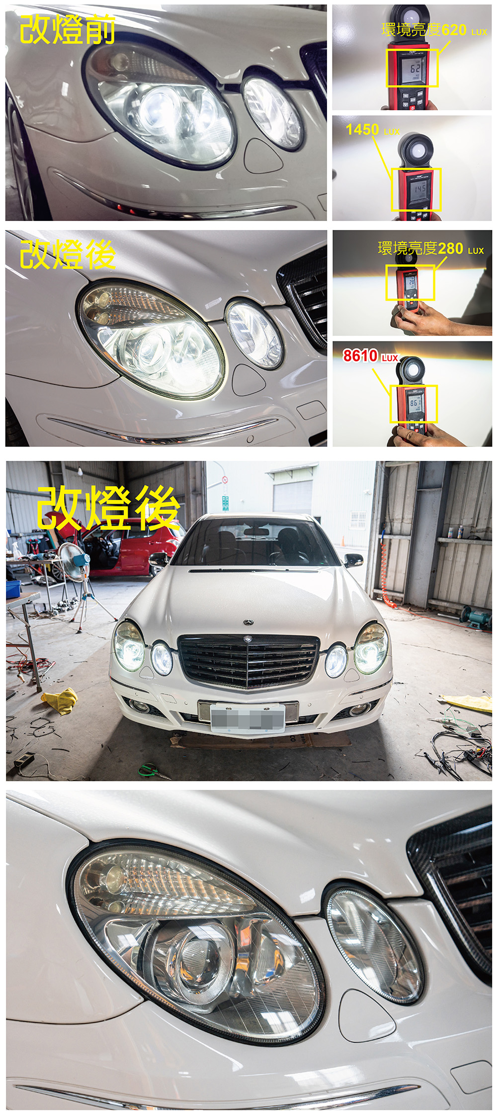 Mercedes-Benz台灣賓士-W211-入門魚眼+雙光源模組+更新環保線材+更新燈罩